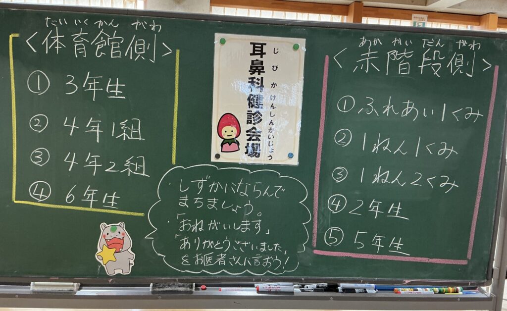 昼休み後、耳鼻科検診がありました。 静かに並んで受診していました。 あいさつもバッチリです。