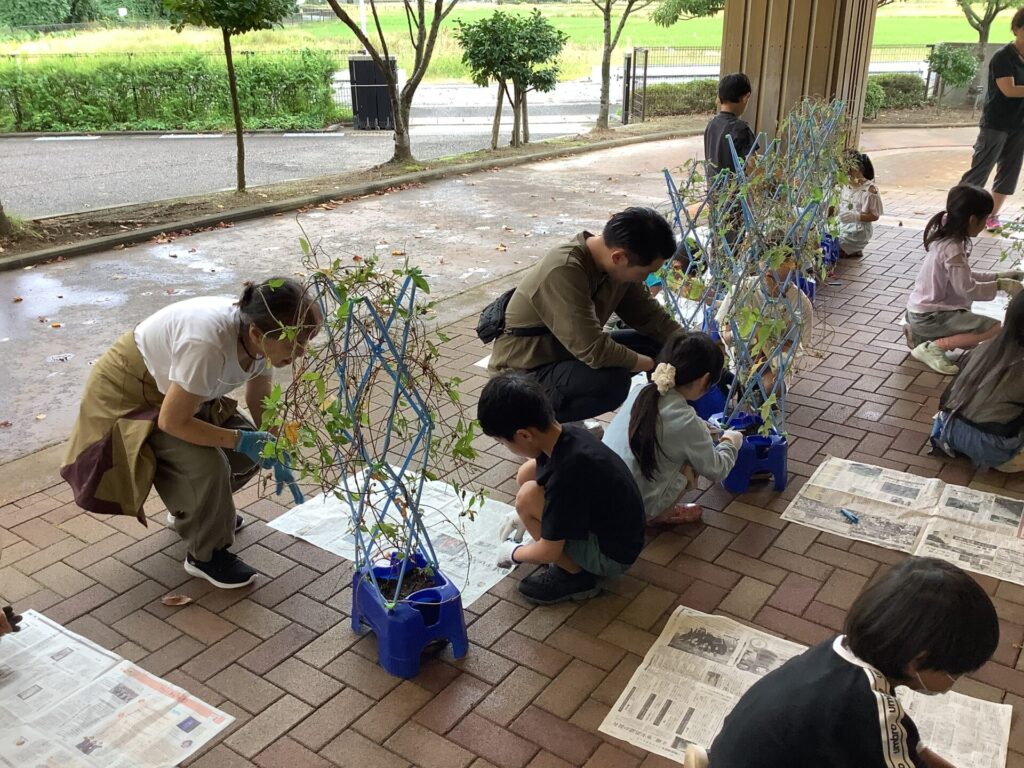 子供たちがアサガオの種を植え、春から毎日、一生懸命に水やりをしていました。