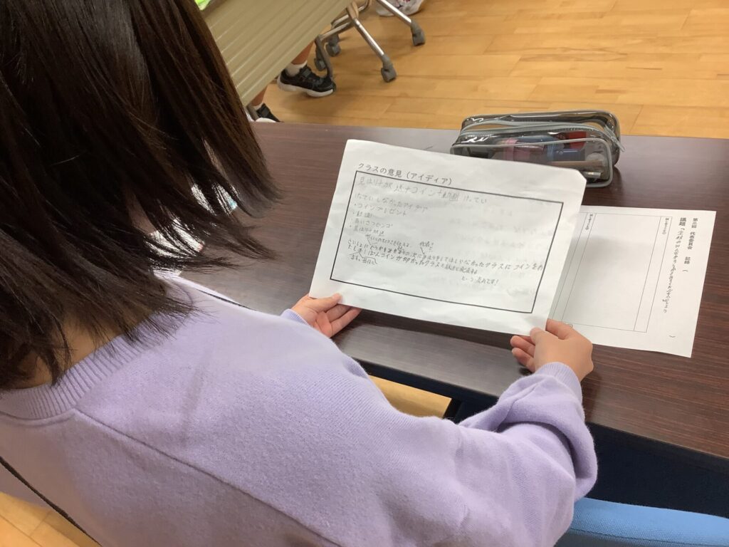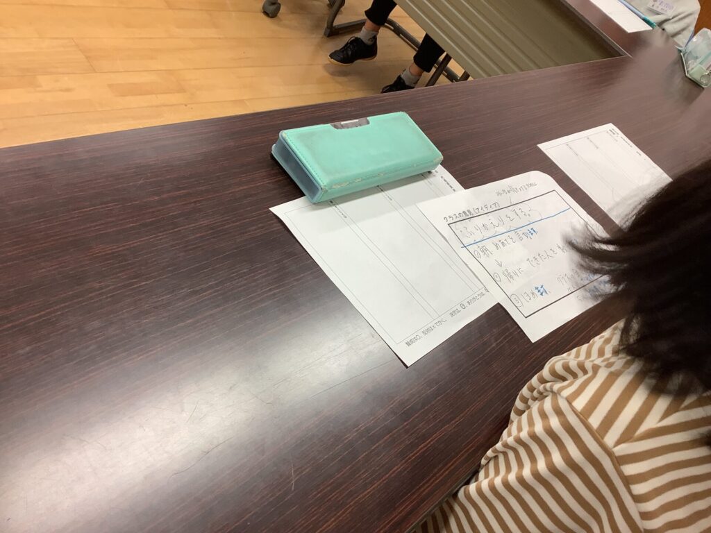 前回は、「みんながあいさつするには」話し合って決まった「あいさつビンゴ」は、今、行われています。