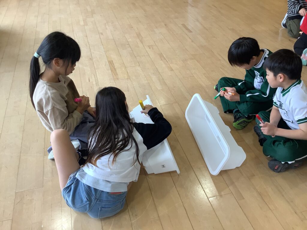 そのプランターに明るく、元気になるメッセージを子どもたちにかいてもらいました。