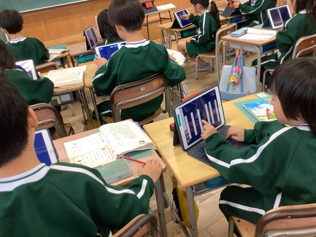 教科書で学習して、考える活動はタブレットで行なっていました。