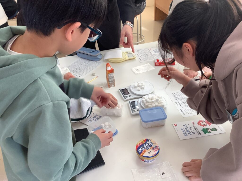 アイス1カップに、角砂糖がこんなに入っていることを知り、びっくりしていました。見える化して実感することができました。
