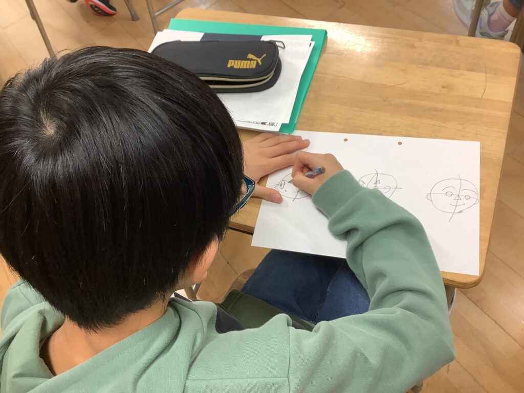 6年生には、漫画家志望が3人います。簡単に顔を描く方法を教えてくださいました。子供たちは、とても喜んで、練習していました。