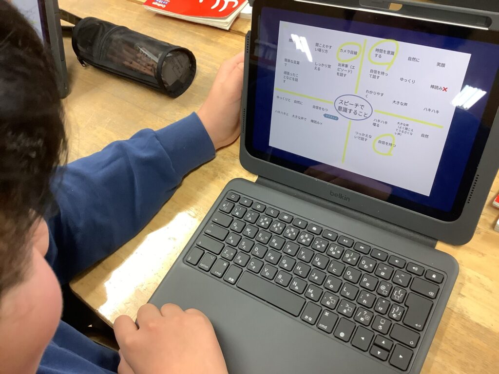 早速、新しいタブレットを使っていました。画面を友達と共有していました。
