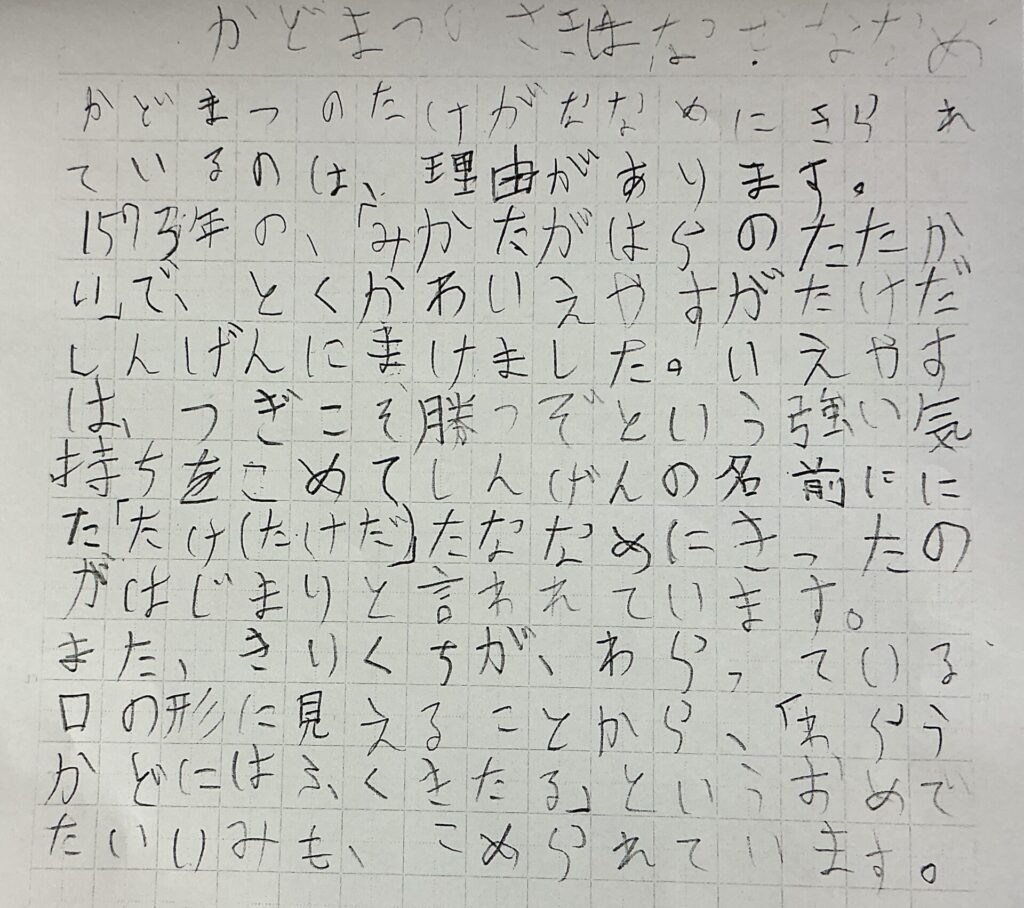 最後に家庭学習として、「なぜ、門松はとんがっているのか❓」を子供たちに家庭学習としたら、何人かと子どもたちが教えに来てくれました。