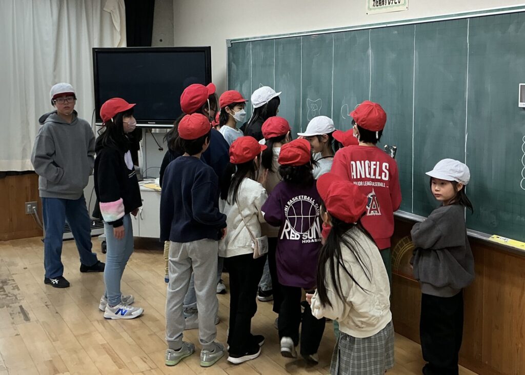 今までと違う点は、5年生が進行すること、1年生は自分で活動教室に行くことです。