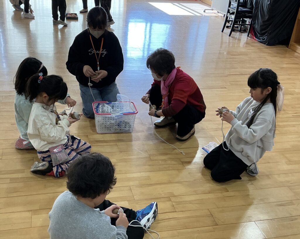 子供たちは、ボランティアさんから教わったり、一緒に遊んだりして楽しんでいました。