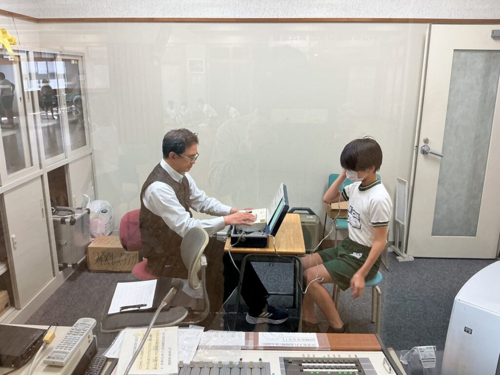 一年教室、身体測定