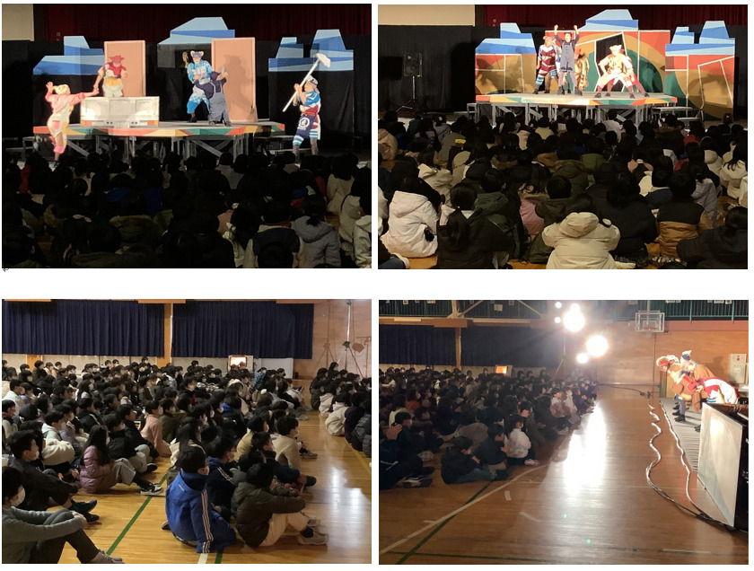 二小の体育館を会場に演劇鑑賞会がありました。劇団たんぽぽの劇団員7名による劇「ルドルフとイッパイアッテナ」が上演されました。図書室にも本が置いてあり,知っている子も多い物語だけに,子どもたちは食い …