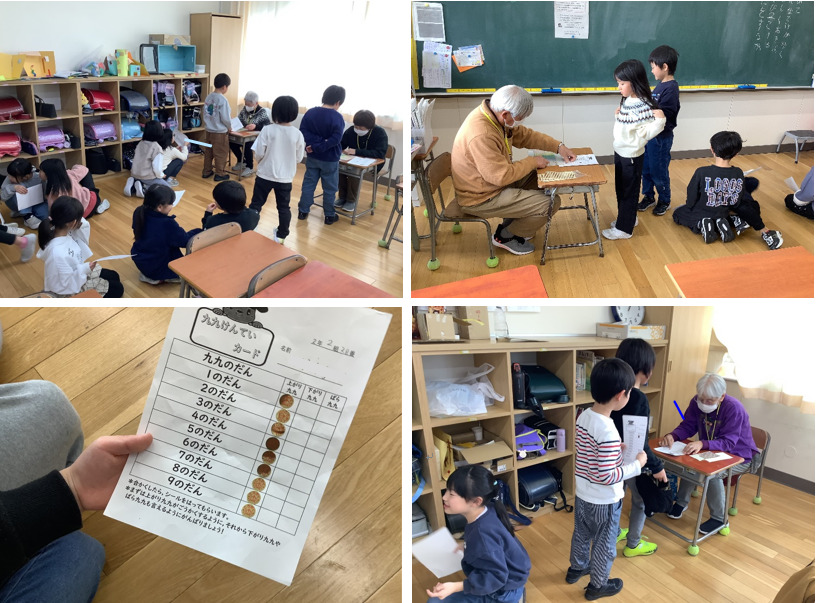 かけ算九九の学習を終えた2年生の子どもたちは,今,九九の暗唱を頑張っています。昼休みになると,地域の九九ボランティアさんたちの前には,九九検定を受けようと子どもたちの長い列ができます。九九検定に合 …