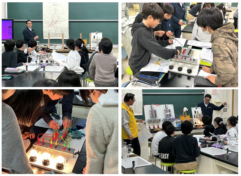 6年生は,ライオンズクラブ主催の出前授業で理科の「電気単元」における発展的な学習「コンセントに届く交流電流(AC)」について学びました。グループごとに用意された実験パネルを使って回路を組み立て,並列 …