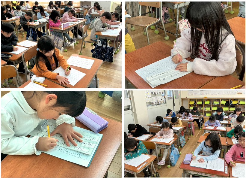 5年生が作ったつるし灯ろうです。新津川に見立てた,幅25㎝,長さ5mの和紙に描かれた絵や模様は,親子による共同制作です。放流したサケの稚魚が大きく成長して,また,新津川に戻ってきてほしいという願いを込めて描きました。会場の天井から吊り下げられた11本のつるし灯ろうは,圧巻でした。