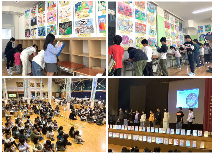 文化祭イベント「おかえり*灯りぷろじぇくとⅡ」に向け,6年生の子どもたちは,サケねぶた灯ろうに色付けをしました。新潟大学の丹治先生,橋本先生が設計し,新津第五中学校美術部の生徒たちが骨組みをつくって和紙を貼りました。そこへ,6年生の子どもたちが色付けをしました。川に帰ろうと頑張るサケ,故郷で喜ぶサケなど,どんなサケにするかを考えながらサケねぶたへ色付けをしました。