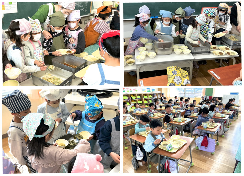 5年生は,漢字を構成するへんやつくりなど文字の組み立てや,左払い,右払いの筆圧に気を付けて書きました。また,平仮名の点画のつながりや結びの筆使いにも気を配り,形を整えて書きました。"春の海"の琴の音が静かに流れる中,気持ちを集中させて筆を運んでいました。