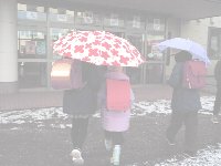 登校時、困っている1年生を、近くを通っていた6年生が一緒に学校まで歩いてくれました。手をつないだり、傘に一緒に入ったり。一緒に来てくれました。