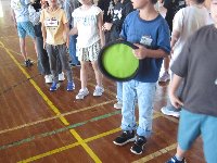 運動委員会が、フリスビードッジボール大会を企画しました。運動委員会の子どもに質問したところ、やろうと思ったのは、「学年内でもっと仲良くなってほしいから」「運動の楽しさを味わったほしいから」です。なぜ普通のボールではなくフリスビーなのかは、「普通のボールはよくやっているから、違うスポーツにも親しんでほしいから」「ぶつかっても柔らかいので痛くないので、今後ボール運動に親しんでくれるから」とのことです。ちゃんと理由をもって取り組んでいるのです。