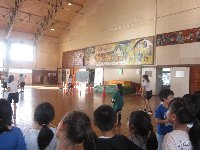 4年生からクラブ活動が始まります。どのクラブに入るかを考える材料として、クラブ活動見学をしました。楽しみにしているようで目が光っているように見えます。