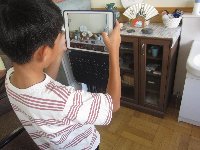5年生が家庭科の学習で整理整頓の仕方を学んでいます。各自、学校の様々な場所に行き、そこが整理整頓されているのか、もっと使いやすくするにはどうすればよいのか考えています。アイディアは会議室ではなく現場に行って生まれることが多いようです。