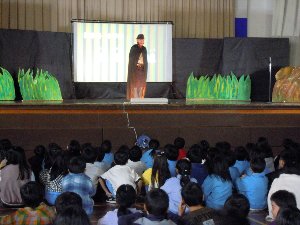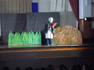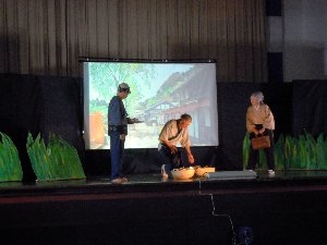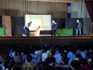 学校支援会の皆様が、新津第一小学校の1~4年生に劇を見せてくださいました。その劇の素晴らしいこと。「セットの機材がもはやプロ」「スクリーンにバックの絵や後ろから影絵が映る工夫」「衣装が本格的」「音響がきれいで多様」「ライトのメリハリがすごい」「子どもを引き付けるお話の内容」「子どもを引き付ける演技」「子どもを引き付ける演出」「テンポのよさ」「子どもたちを笑わせてくださったり、道徳的に教えてくださったり」と、考え抜かれた素晴らしい劇でした。