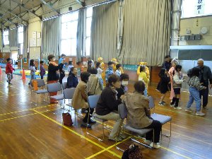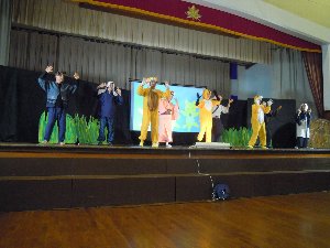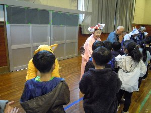 加えて、学校支援会の皆様と子どもたちの一体感が素晴らしいのです。劇の中で、子どもたちは一緒に動いたり、声をあげたりしています。引き込まれているのです。そして、退場時に、支援会の皆様と子どもたちがハイタッチしたり、声をかけあったりもとっても素敵な場面でした。まさに、地域は子どもを育てるということを実感しました。本当にありがとうございました。
