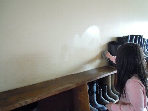 給食後の廊下に、おそらく飲み終わった牛乳パックを片付けている時にこぼれたであろう、牛乳のこぼれた跡が、ポタポタポタポタとありました。それに気付いた子たちが「大変です」と報告してくれたので、ペーパーを持ってきて「誰か拭いてくれる人いる?」と聞くと、我先にと数名の子が寄ってきて拭いてくれました。