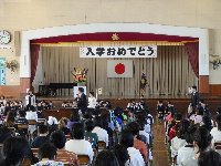 新しい1年生が入学しました。入学式の中で大人向けの難しい話もあった中、がんばって話を聞き続けていた新1年生。教室で、担任の投げかけを聞き、正対して答え対応している新1年生。素直にがんばることができる新1年生の入学を、一小の全員が歓迎しています。