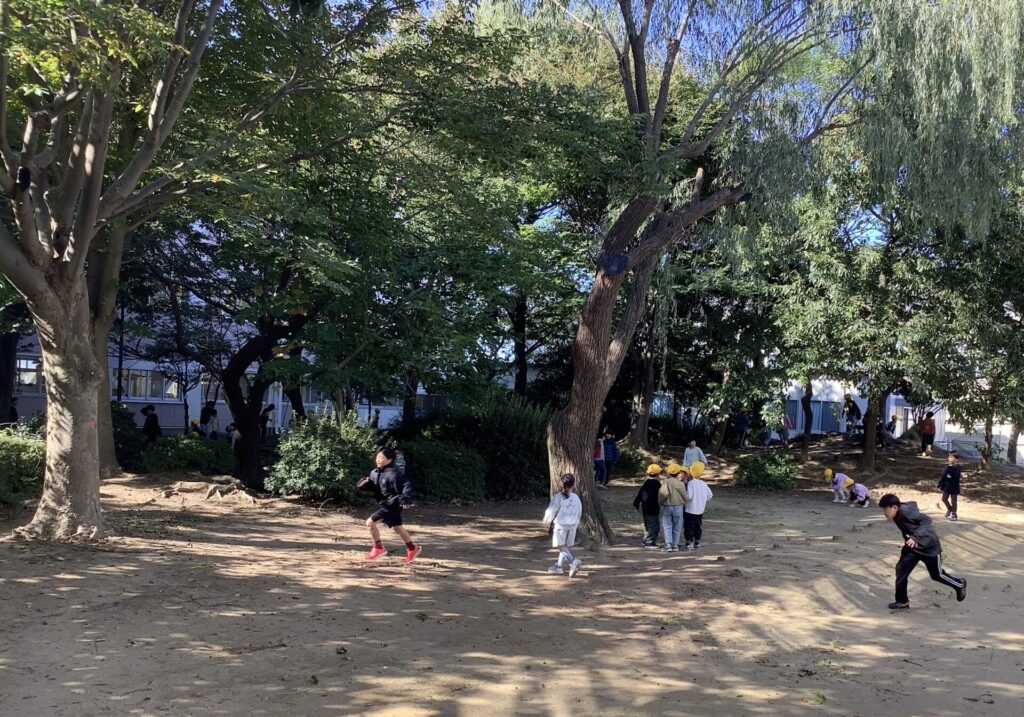 安全点検のためしばらく立入できなかったみどりの丘でしたが、今日から立入できることになりました。秋晴れの中、久しぶりにみどりの丘には、元気いっぱいの西っ子たちであふれていました。