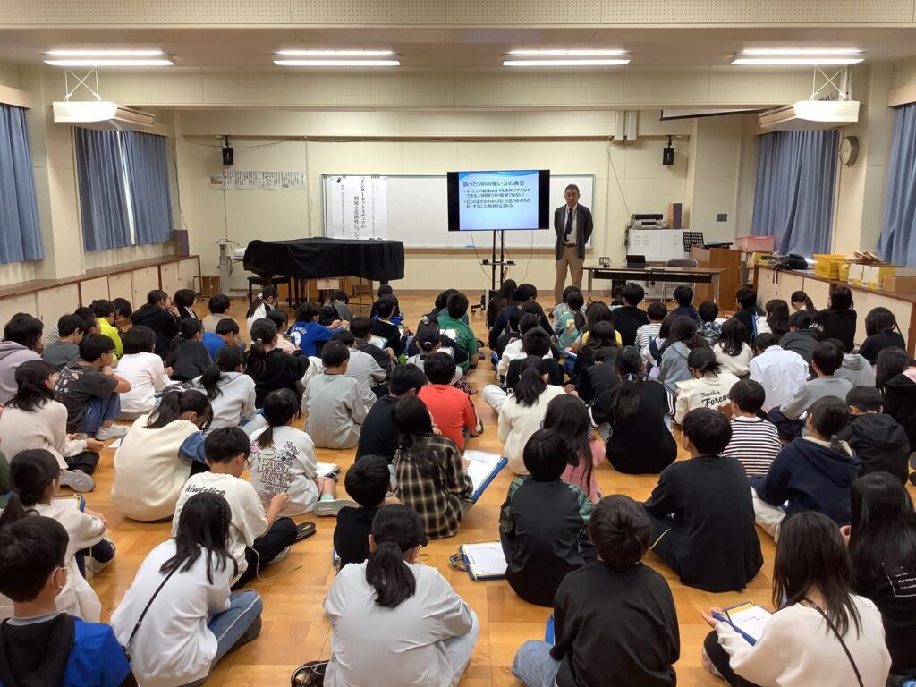 5、6年生対象に、インターネットやSNSに関わる学習会が行われました。新潟市教育委員会からの講師から、インターネットやSNSの特性と、危険性について、具体的な事例を基にしながら詳しく教えていただきました。