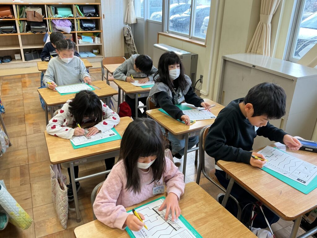 図工の「まどをひらいて」という学習で,カッターを使った工作をしています。紙に窓を開け,建物を作っていくのですが,まずはカッターを使う練習です。安全に使いながら,直線や曲線をきれいに切ることを目標に …