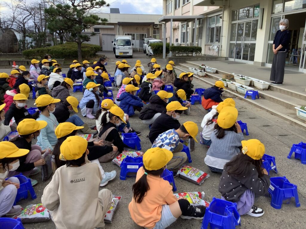 9日(火)に、チューリップの球根植えを行いました。来年度入学する新1年生を迎えるために、毎年植えています。植え方の説明をよく聞いて植え、「何色のチューリップが咲くかな?」「芽が出るのが楽しみ!」と …