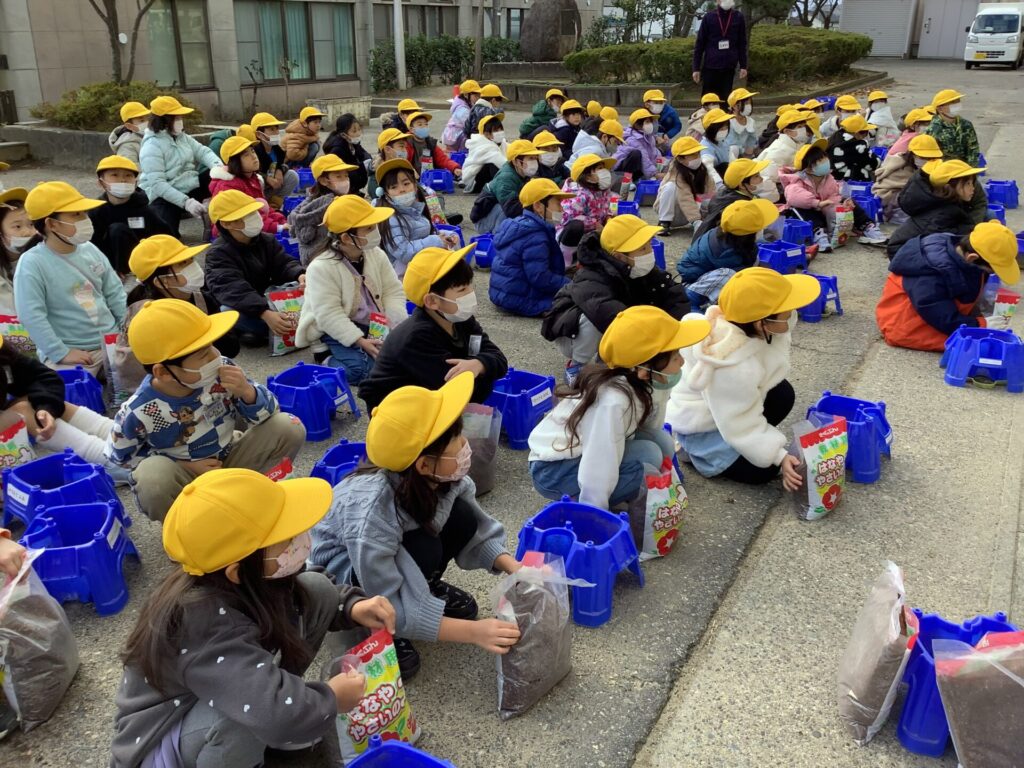 9日(火)に、チューリップの球根植えを行いました。来年度入学する新1年生を迎えるために、毎年植えています。植え方の説明をよく聞いて植え、「何色のチューリップが咲くかな?」「芽が出るのが楽しみ!」と話していました。片付けもすばやく行い、こぼれた土を丁寧に拾う姿も見られました。急なお知らせでしたが、軍手を持たせていただいたおうちもありました。ご準備いただき、ありがとうございました。