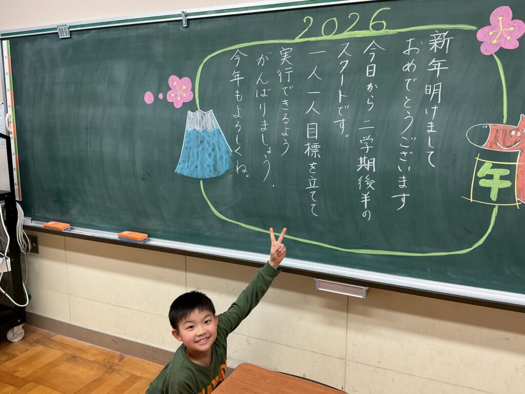 あけましておめでとうございます。新しい年が幕をあけ、2026年がスタートしました。1月8日、元気な西っ子たちが学校に戻ってきました。友だちや先生との再会を楽しみ、冬休みの思い出を語り合う微笑ましい様子でした。馬のように颯爽と駆け、毎日いきいきと過ごしていきます。本年もよろしくお願いします。