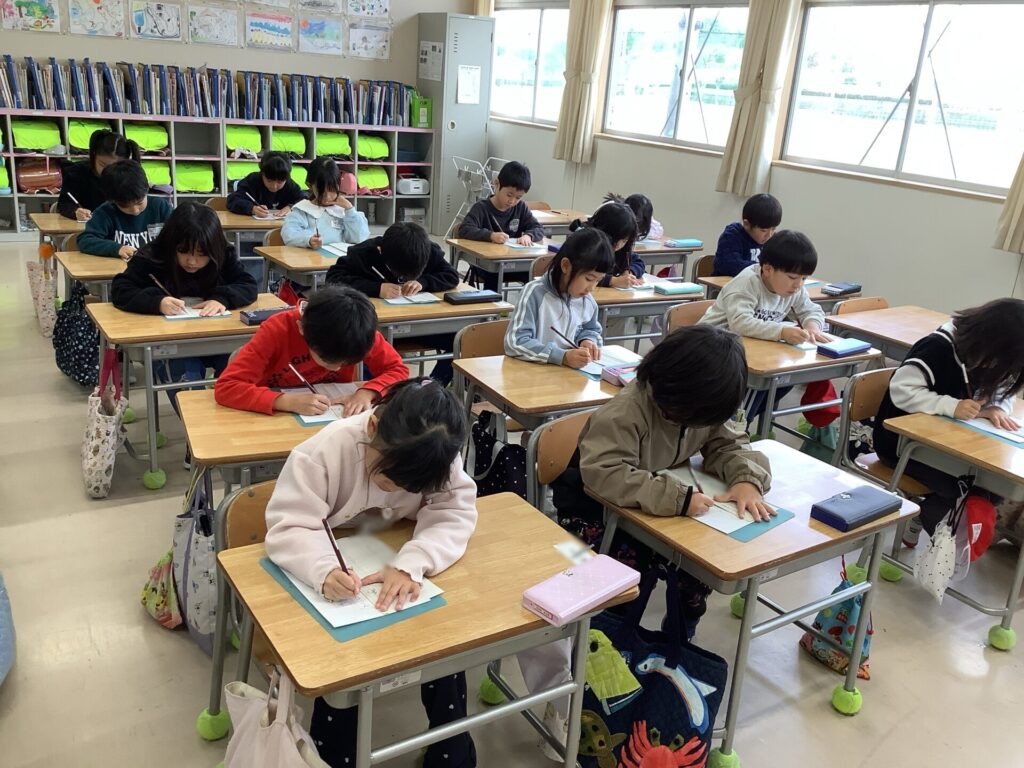 1月8日(木)の3時間目に、書き初め大会を行いました。姿勢や書き方に気をつけて、一文字一文字確認しながら丁寧に書いていました。書写の時間や冬休みの宿題で一生懸命練習したおかげで、すてきな作品が完成しました。2月には、校内書き初め展を実施します。2月の学習参観の折に、ぜひ子どもたちの力作をご覧ください。