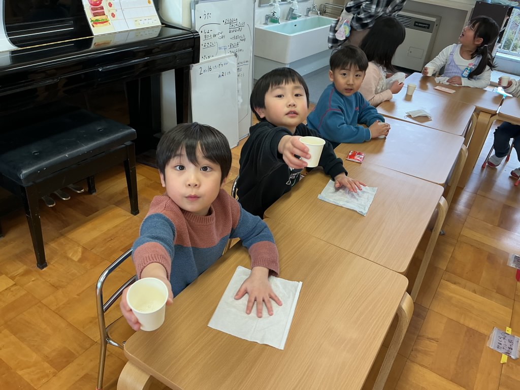 年中組と年長組では週2回、給食後にフッ化物洗口を実施しています。どの子も真剣な表情で話を聞き、一生懸命口の中でぶくぶく泡立てます。回数を重ねるごとに、とても上手になり、泡がたくさんできる姿に成長を感 …