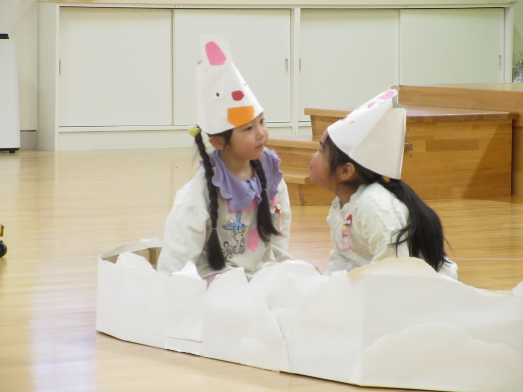 子どもたちが楽しみにしていた生活発表会では、一人一人がその子らしさを表しながら、普段の遊びと同じく表現を楽しんでいました。そして、いつもとは違う会場の雰囲気に、わくわくドキドキ、うれしい気持ちやちょ …