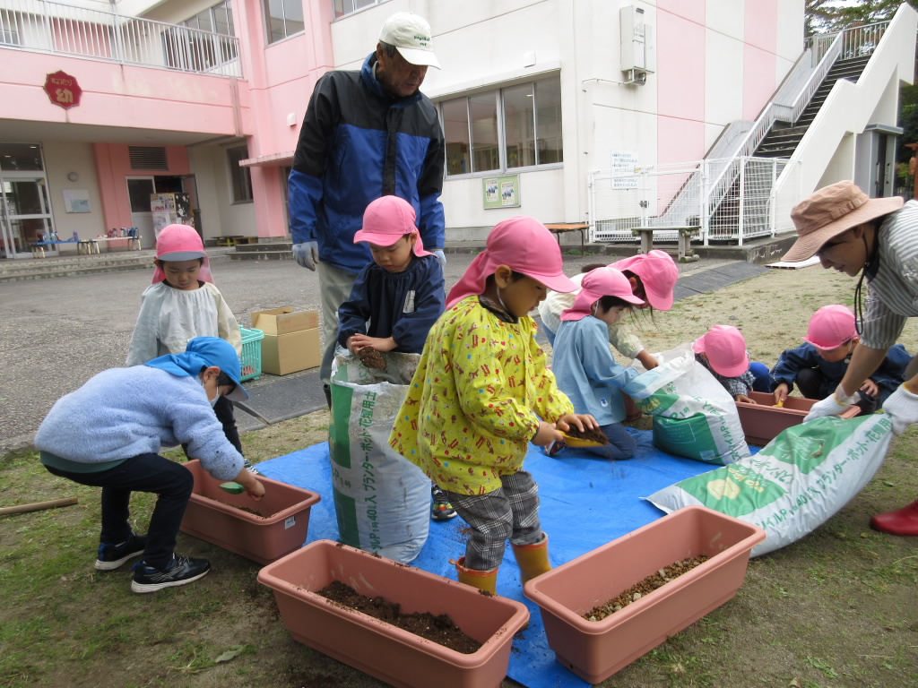 園庭の落ち葉がぱらりぱらりと舞い始め、秋の深まりを感じる今日この頃です。 幼稚園では、チューリップの球根を植えました。プランターの土作りから始まり、どうやって球根を植えるとすくすく育つかな?と考え …