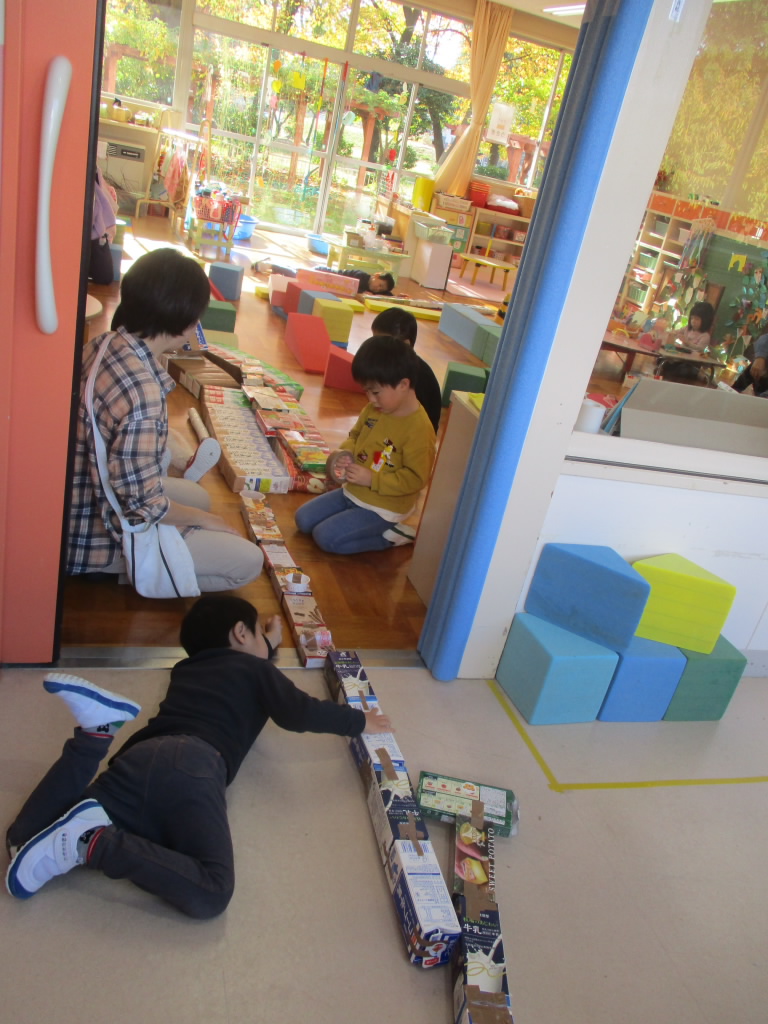子どもたちは遊びの名人です。自分で選んだ素材を、くっつけたり、つなげたり、ころがしたり自分なりに試して遊びます。偶然できた形を面白がったり、見立てて遊んだり、遊び方は様々です。決められた遊具や与えら …