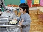 年少組は,折り紙でサンタさんを作ったり,クリスマスの木を描いたりしています。「サンタさんどんな顔にしようかな。」「わたしのは女の子のサンタさんなのよ。」おはなしをしながら楽しく作っています。外は雪が舞う日でしたが,幼稚園のみんなはぽかぽかあたたかく元気です。