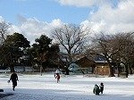 子どもたちが駆け出してきました。さむさなんてへっちゃら。元気いっぱいです。