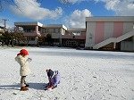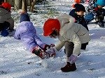転がったり,雪玉を作ったり,子どもたちは雪の感触を楽しみます。