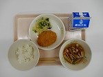【1月25日のきゅうしょく】ごはん,さわにわん,ぎゅうにく入りコロッケ,おひたし