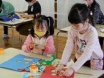 幼稚園の中では,おにのお面づくり。どんなおにができるかなぁ。