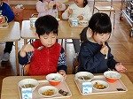 かみごたえのあるだいずやさつまいもをよくかんで食べています。