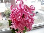 春の陽気に誘われた窓辺のヒヤシンスがすてきな香りを漂わせています。ひなまつりのお祝いです。おや,おいしそうなチョコレートも並んでいますよ。いろんな味があるんですって。メロン味もあると教えてもらいました。すごーい。おいしそう。