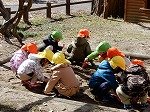 うさぎのお世話は,少人数のグループごとに,年長組から年中組にバトンタッチ。「いっしよに,おみずをかえにいこう」「こうやってしんぶんしてつつむのよ」年長組がやさしく教えてくれます。年長組はもうすぐ小学生。今度年長組になる年中組に,今まで年長組がやってきたいろいろなことを教えてくれます。