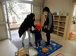 おやつを食べ終わって,年少組は降園です。おうちの方がお迎えに来てくださいました。「みんなで食べたおやつ,おいしかったよ。幼稚園たのしかった。」と言ってくれるといいな。帰る途中,園庭の遊具で遊んでいきます。また明日,遊ぼうね。