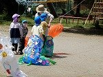 「わあ、高く上がった!」さあ,今日も外で元気よく遊びましょう。