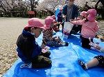 あたたかい風が吹くたびに,今日は花びらが雪のように舞いました。手を広げて花びらを追う子,青空を見上げ花びらの舞う様子を見る子,子どもたちは,お花見を楽しむ方法を見つける名人です。