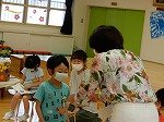 年長組はお誕生月のおうちの方が来てくださいます。ちょっとテレテレ。でもうれしいね。