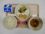 【7月7日のきゅうしょく】ごはん,うめふりかけ,たなばたじる,星のポテト,アーモンドあえ,ぎゅうにゅう
